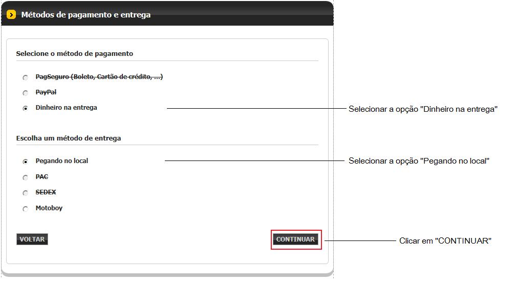 Após selecionar o produto desejado e ele constar no seu carrinho, para efetuar a compra, você deverá seguir 4 passos:
