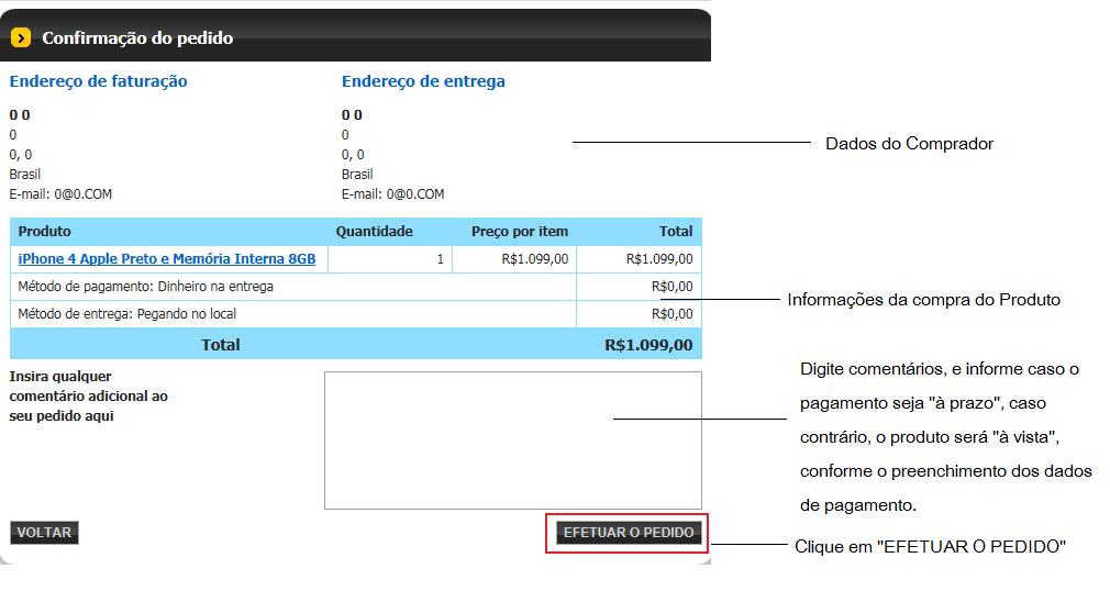 *Obs.: Caso o pagamento da compra seja "à prazo", você deverá informar nos comentários, caso contrário, a compra será enviada "à vista", conforme cadastro.